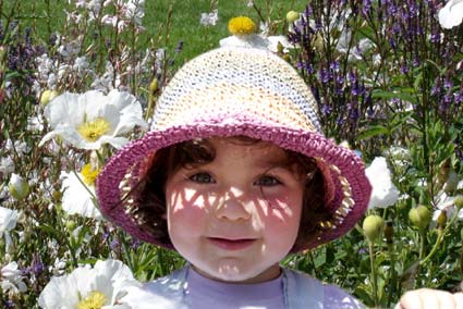 Recadrer les fleurs, sélectionner Célia, ajouter quelques retouches maison et la recette nous donne une magnifique petite fille parmi les fleurs. | Célia est parmi les fleurs |