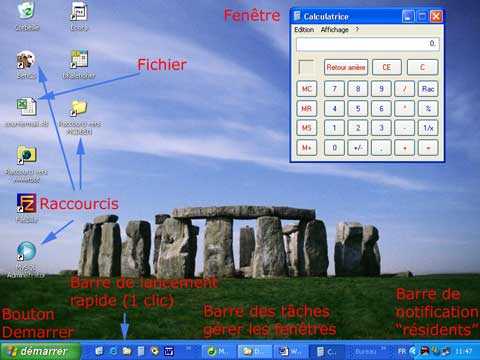 contenant les fenêtres ouvertes et les raccourcis (double-clic